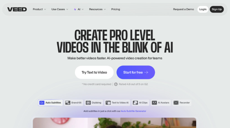 VEED operates entirely in your browser, making it accessible from any device without software installation. It combines AI features with traditional editing tools for maximum flexibility.